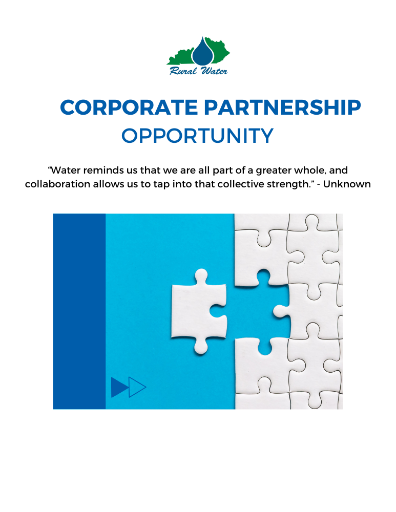 Explore the Corporate Partner packet we've created to see how KRWA can help you expand your influence, build valuable relationships, and contribute to the success of rural water utilities across Kentucky. We look forward to discussing the exciting opportunities available through our Corporate Partner Program. If you have any questions or need more information, please don’t hesitate to reach out!